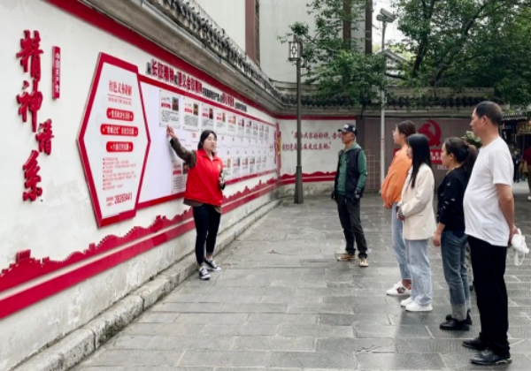 在红花岗区纪念馆社区的杨柳街上,路边的“新时代文明实践长廊”总是引人驻足,辖区党员群众、商户和游客可以在此了解党的一大到党的二十大辉煌历程、领悟中国共产党人精神谱系。“我们利用新时代文明实践长廊、奋斗者长廊等红色阵地资源,开展讲述红色故事、打卡红色景点等活动。同时,通过阵地共享,让党员群众、游客可以随时看、随时听,实现了教育阵地由室内向室外延伸、教育模式由封闭向开放转型、教育对象由党员向群众普及。”纪念馆社区工作人员张美娟说。