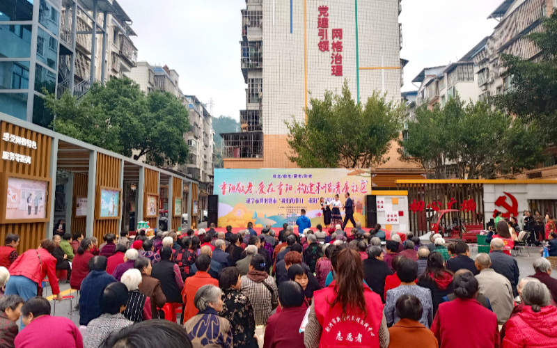 射洪市新时代文明实践中心在初心广场开展重阳敬老文艺表演活动。遂宁市文明办供图