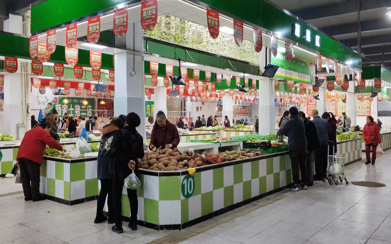 市民们在干净整洁的遂宁市船山区藕园巷农贸市场内选购食材。遂宁市文明办供图