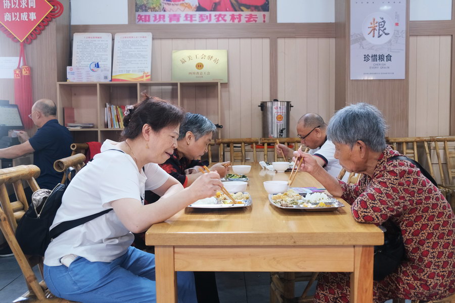居民在资阳市雁江区莲花街道向阳社区食堂就餐。漆世平 摄